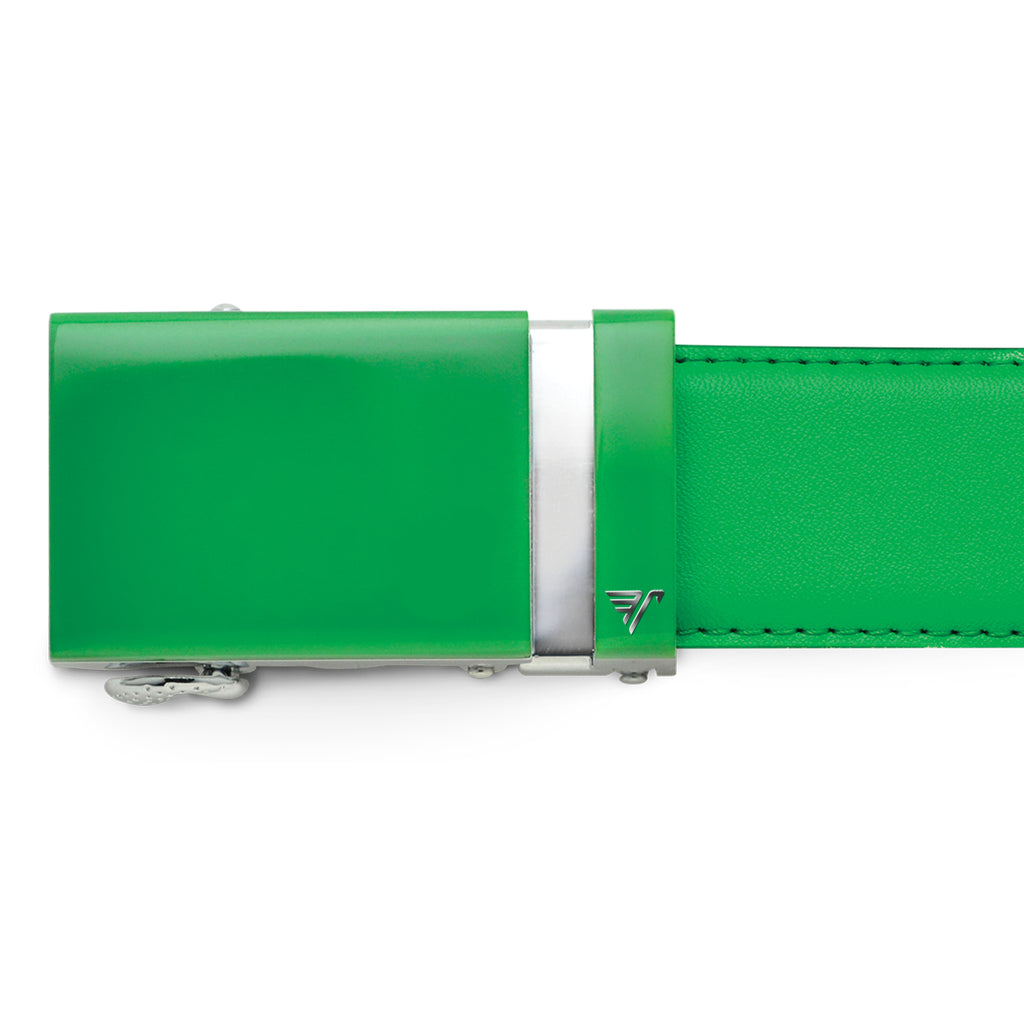 Materials: 40mm metallic buckle with acrylic finish. 1.5" genuine leather with synthetic coating.