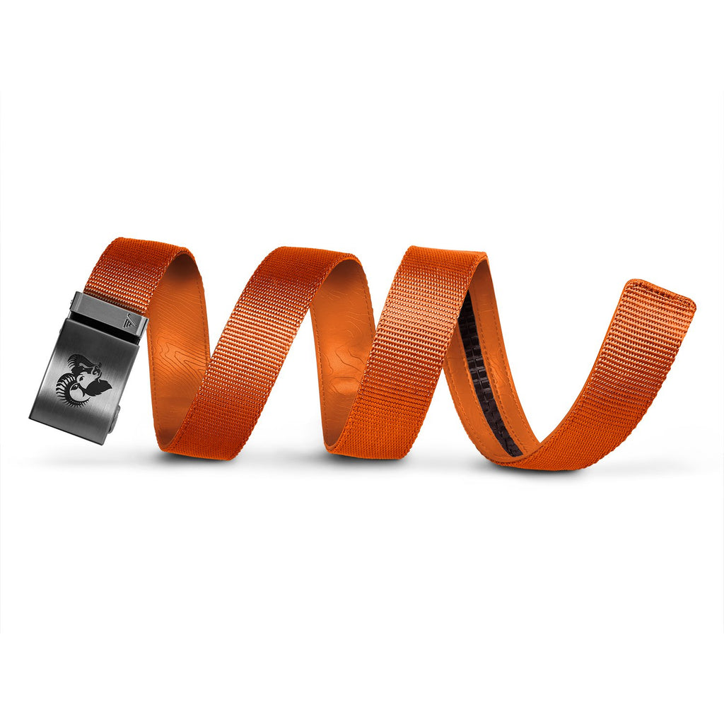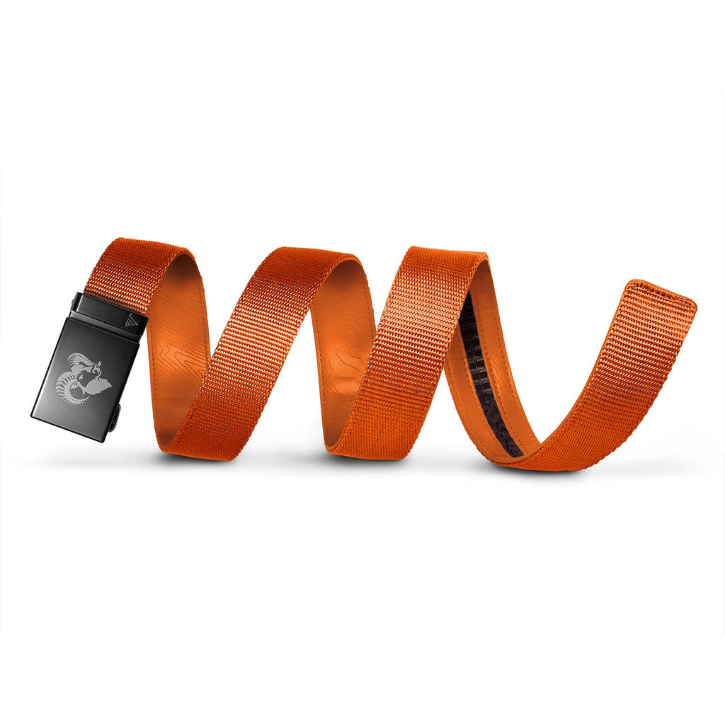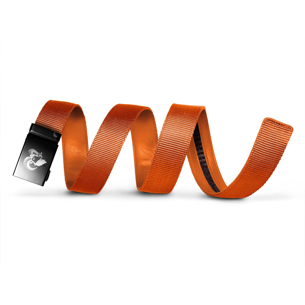 Mission Belt's Outdoorsman collection is constructed with a durable nylon webbing strap and a custom engraved buckle. This fusion of functionality and style utilizes Mission Belt's track system, a core feature of your favorite no-holes belt.