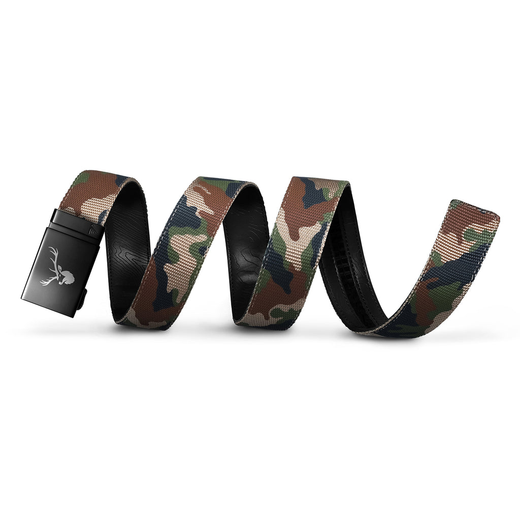 Mission Belt's Outdoorsman collection is constructed with a durable nylon webbing strap and a custom engraved buckle. This fusion of functionality and style utilizes Mission Belt's track system, a core feature of your favorite no-holes belt.