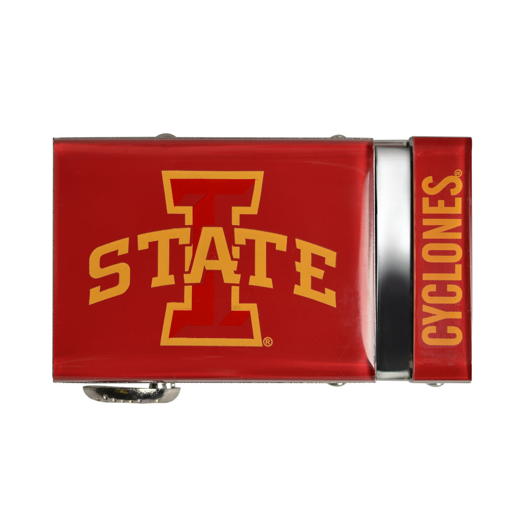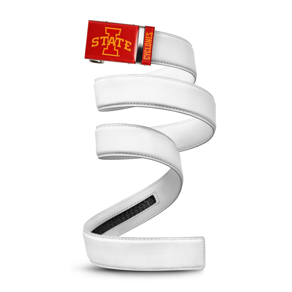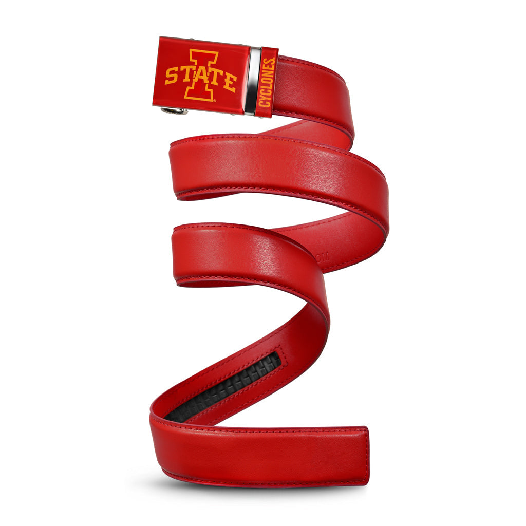 The officially licensed Iowa State Cyclones Belt features an imprinted team logo and team name on the buckle under a clear acrylic finish. Genuine leather strap with protective coating and the interior houses a special track which is part of the unique no-holes perfect fit system. The buckle can be detached from the leather strap so you can always trim it down to size.