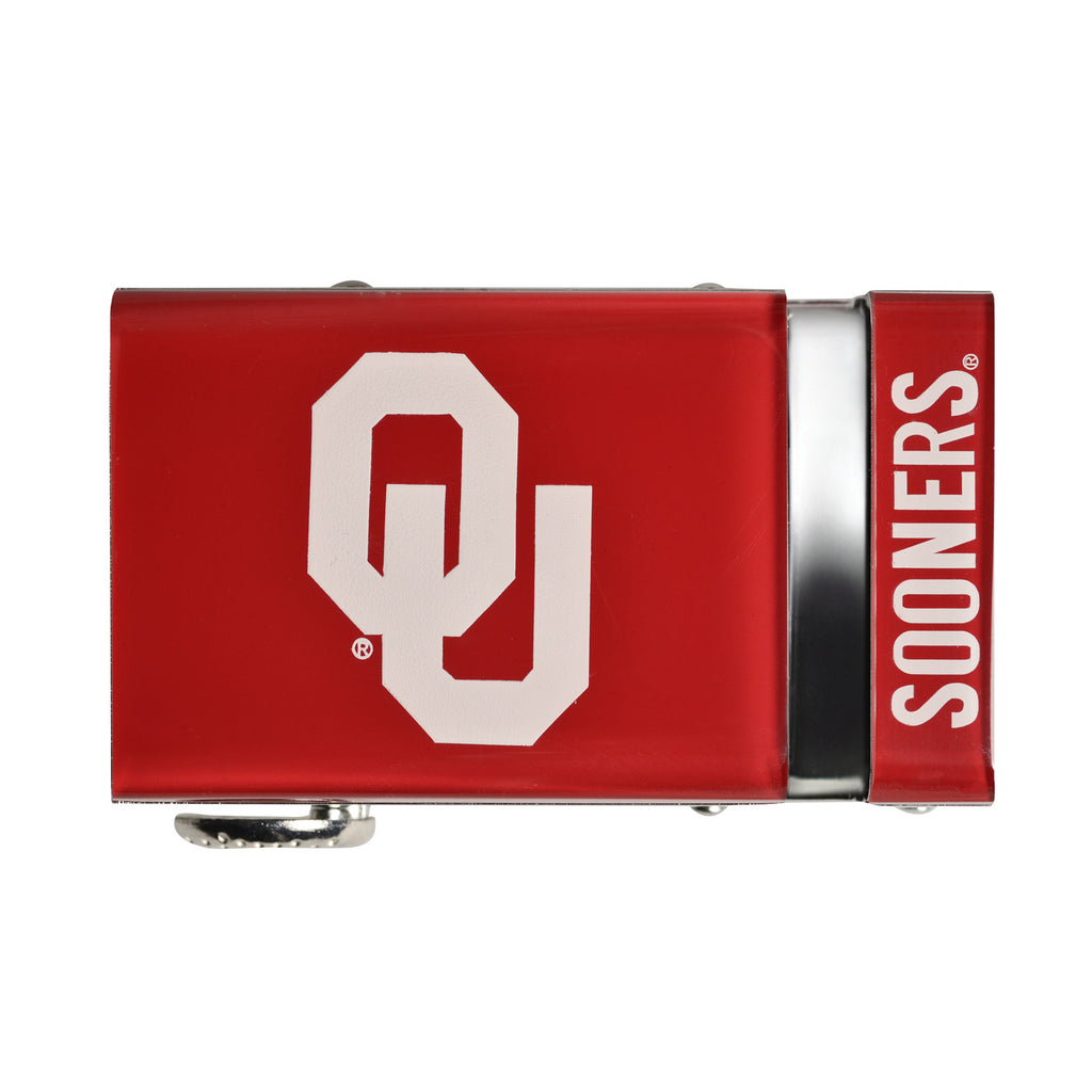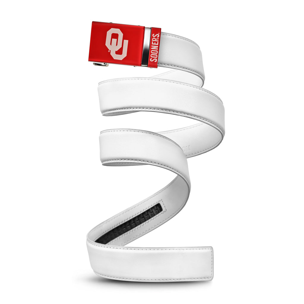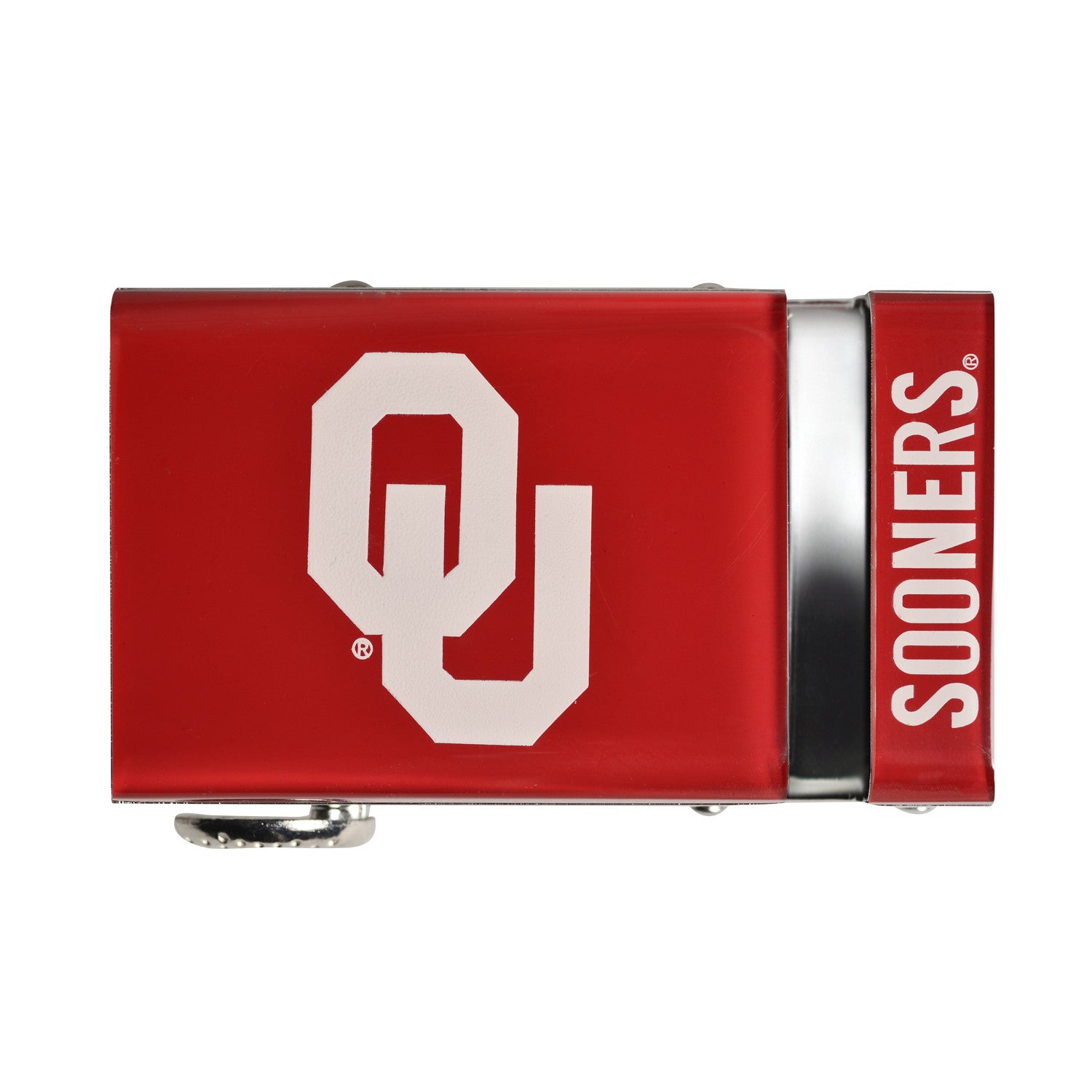 The officially licensed Oklahoma Sooners Belt features an imprinted team logo and team name on the buckle under a clear acrylic finish. Genuine leather strap with protective coating and the interior houses a special track which is part of the unique no-holes perfect fit system. The buckle can be detached from the leather strap so you can always trim it down to size.