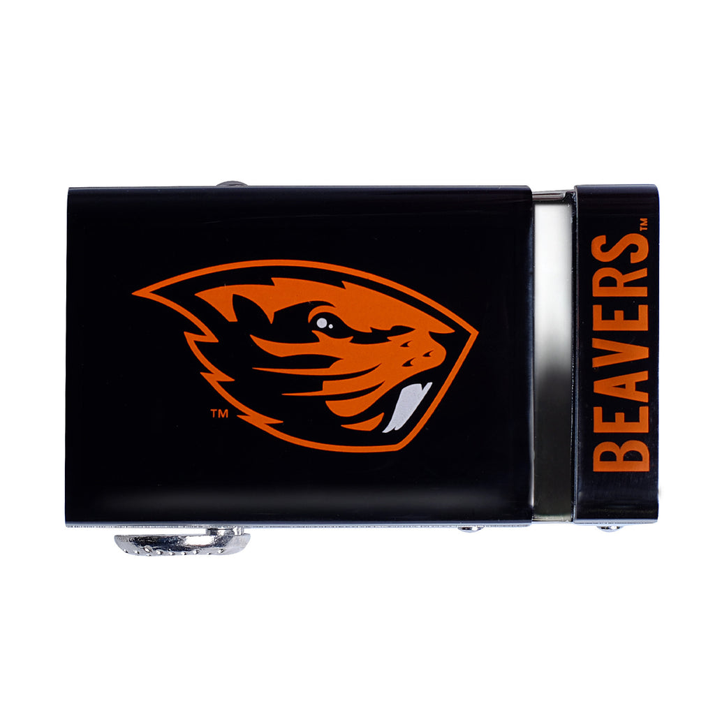 The officially licensed Oregon State Beavers Belt features an imprinted team logo and team name on the buckle under a clear acrylic finish. Genuine leather strap with protective coating and the interior houses a special track which is part of the unique no-holes perfect fit system. The buckle can be detached from the leather strap so you can always trim it down to size.