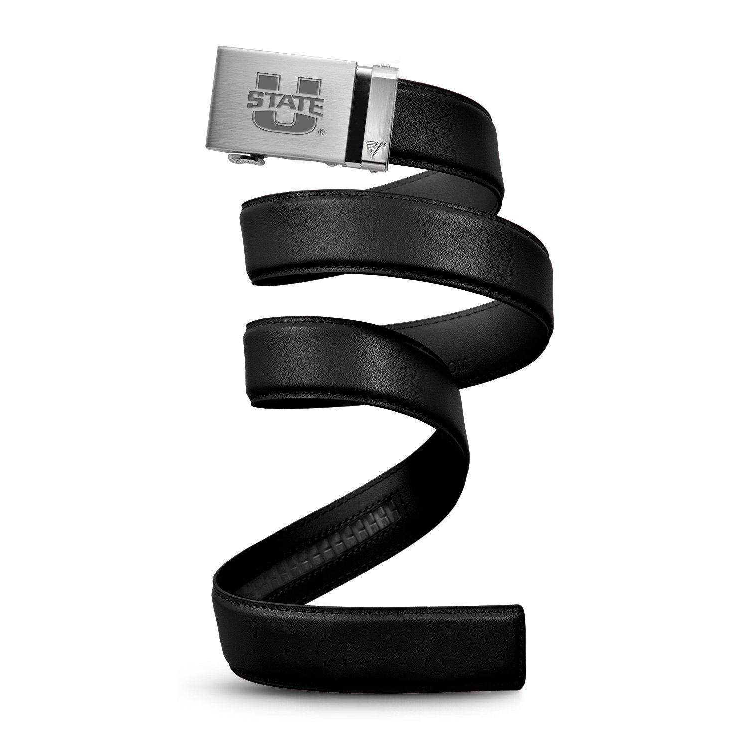 The officially licensed Utah State Aggies Belt features a team logo and team name on the buckle under a variety of finishes. Genuine leather strap with protective coating and the interior houses a special track which is part of the unique no-holes perfect fit system. The buckle can be detached from the leather strap so you can always trim it down to size.